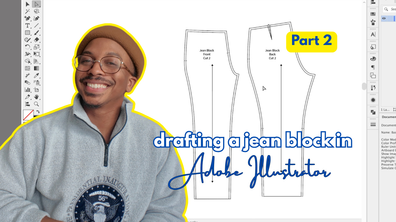 Get ready to continue the fun! Today, we’re wrapping up our jean block base in Adobe Illustrator. I’ll guide you through the process of adding seam allowance, printing it out, and to make things even better, I’ll throw in a bonus tip on using this trimless PDF file! Let’s jump right in.
